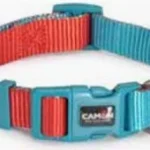 Collare regolabile bicolor in nylon di Camon, progettato per cani. È colorato e facile da regolare, permettendo di adattare la misura al collo del cane in modo confortevole e sicuro, con spazio sufficiente per inserire due dita tra collo e collare per garantire una vestibilità corretta e comoda.