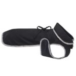 Impermeabile waterproof con interno in pile. Bordi a contrasto, chiusura fasciante sulla schiena con nastro. Apertura per il collare ed elastici per le zampe posteriori.