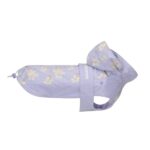 Impermeabile water resistant con interno staccabile in pile e cappuccio fisso richiudibile mediante una comoda zip. Stampa con fantasia floreale e scritta ”no rain, no flowers”, posta nella chiusura fasciante sulla schiena, dotata di velcro. Coulisse posteriore per regolare la vestibilità. Apertura per il collare e per la pettorina con zip waterproof dotata di doppio cursore ed elastici per le zampe posteriori.