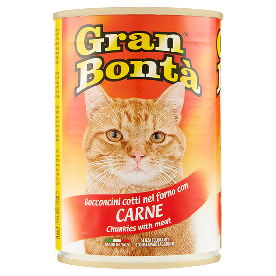 Gran Bontà Adult Bocconcini con Carne è un alimento completo per gatti adulti. I gustosi e delicati bocconcini cotti al forno, sono formulati con ingredienti facilmente digeribili come la carne di manzo, fonte di proteine e minerali, per supportare la quotidiana vitalità dei gatti. Un’alimentazione bilanciata con vitamine A-D3-E per soddisfare le esigenze nutrizionali degli animali. Senza coloranti e conservanti artificiali aggiunti. Made in Italy e No Cruelty Test.