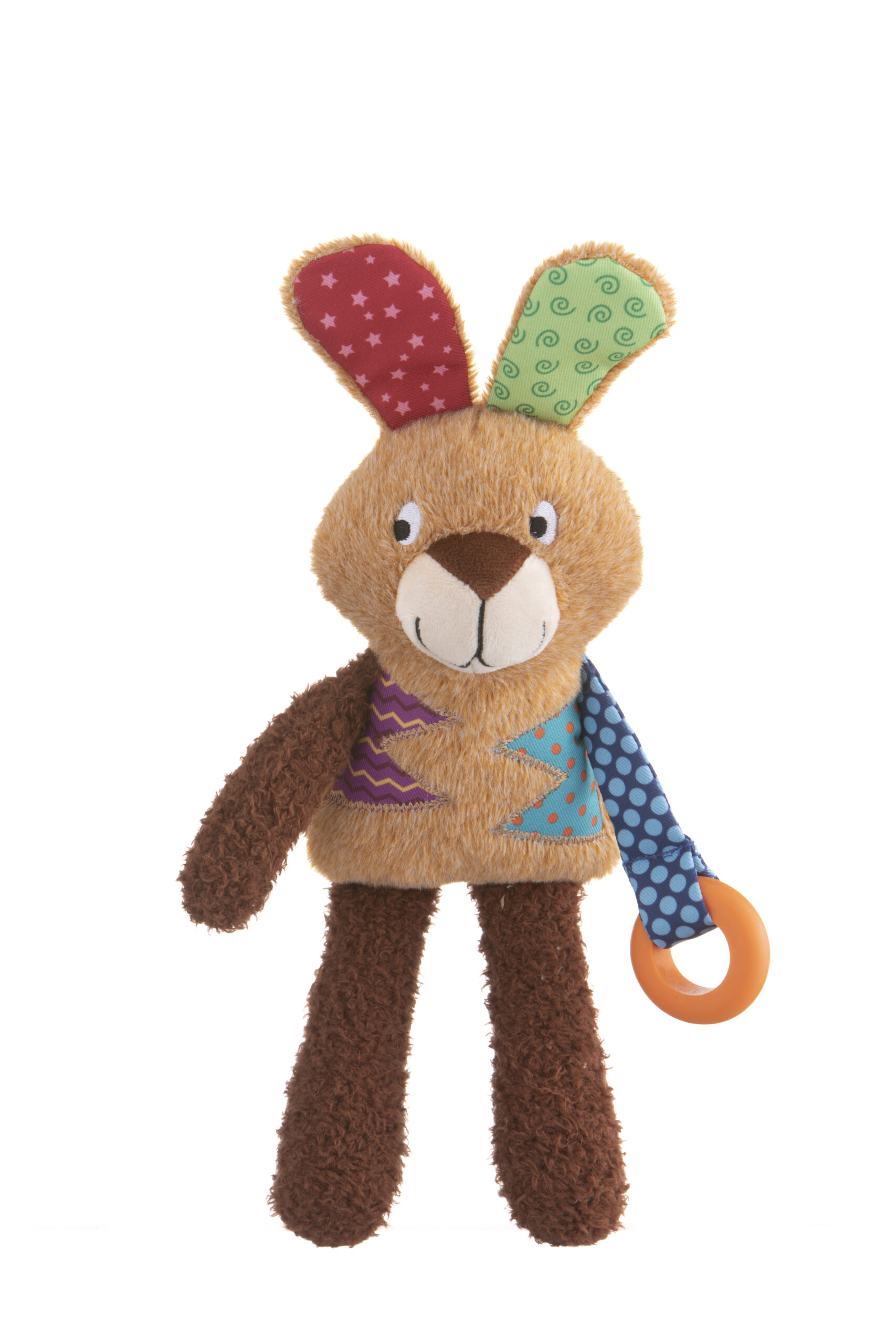 LEOPET CONIGLIO MULTICOLORE IN TESSUTO E PELUCHE CON ANELLO IN TPR 32X12 CM