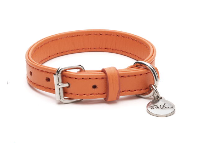 SHORTY COLLARE IN MORBIDA PELLE ARANCIO CON MEDAGLIETTA 35X1,5 CM