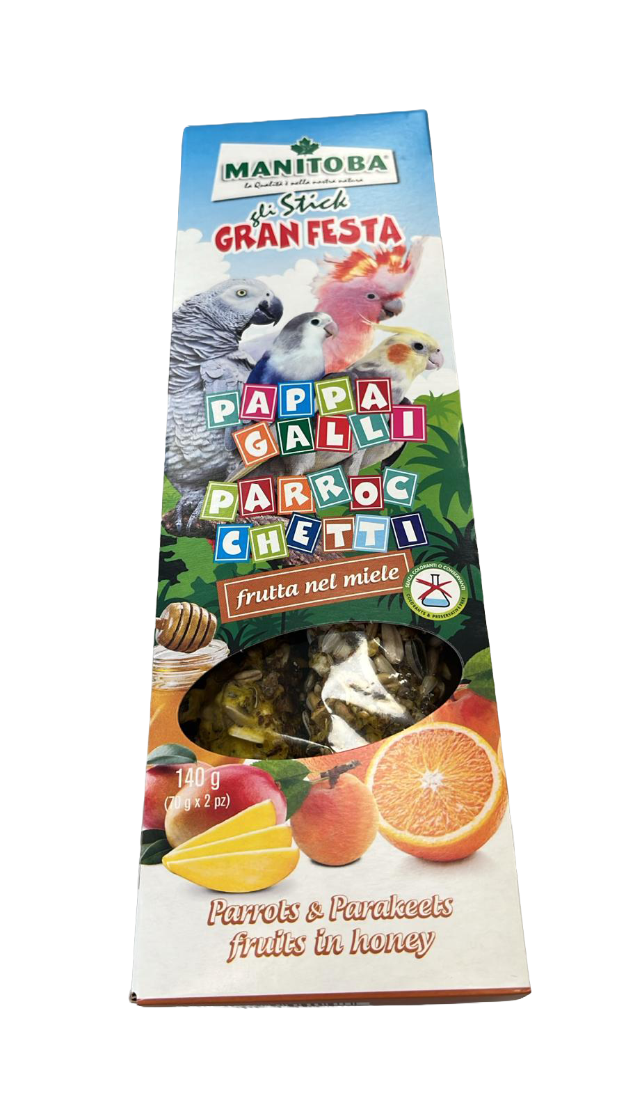 MANITOBA STICK PAPPAGALLI & PARROCCHETTI FRUTTA MIELE 2pz. x 70g