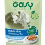 Oasy Wet Dog Straccetti – PUPPY POLLO e RISO Busta 100 gr (22pz)