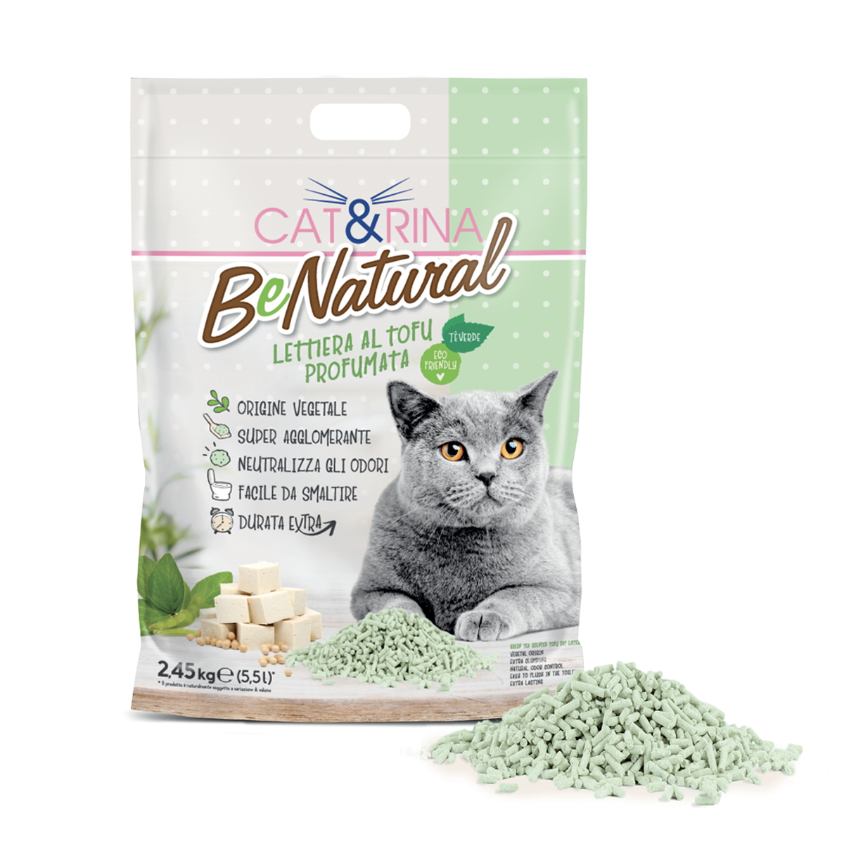 CAT&RINA BENATURAL LETTIERA PER GATTI AL TOFU 2450 G 5,5 L TE’ VERDE